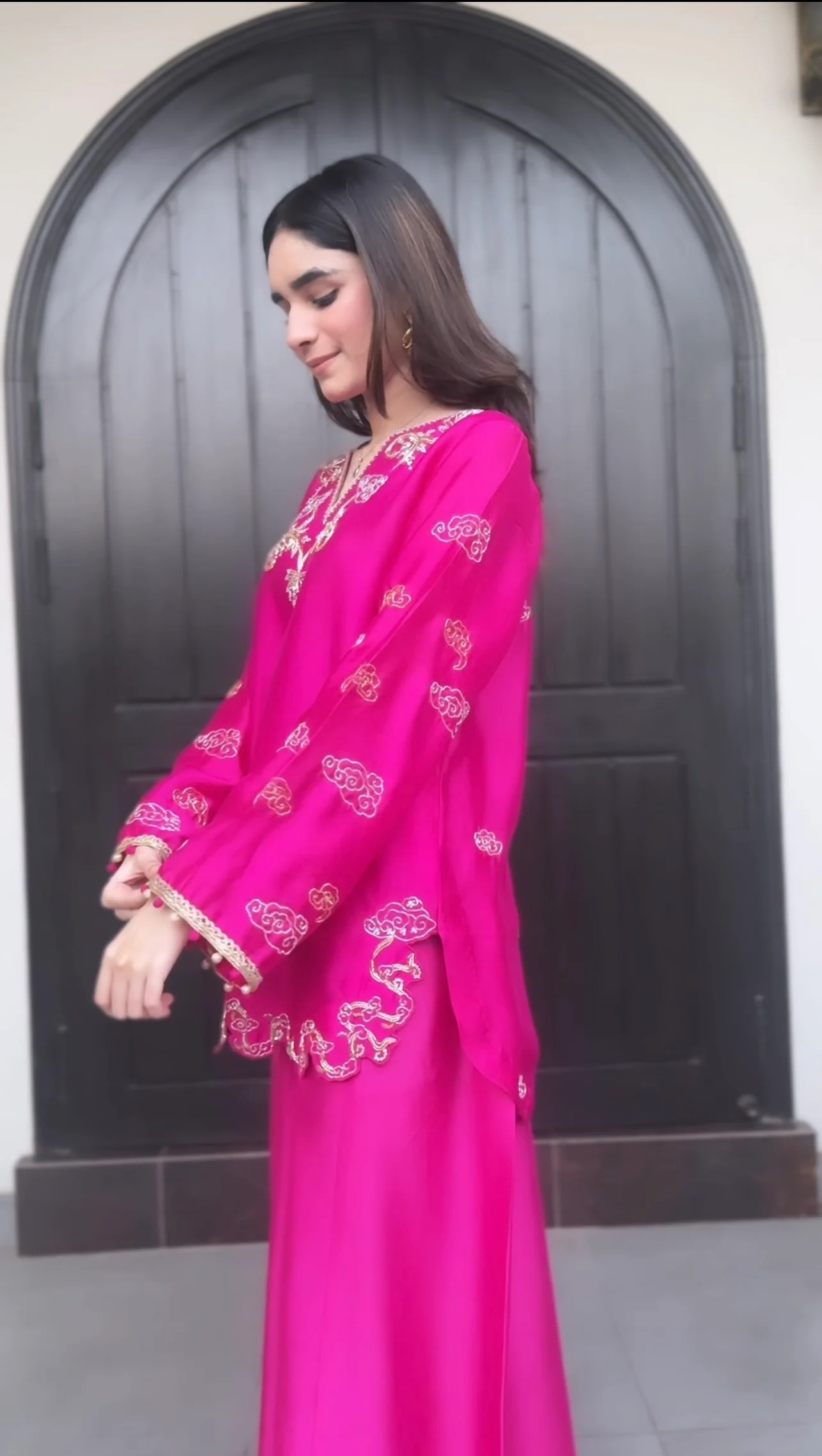 Raspberry from the Luna-Eid Editā25Ā is a contemporary statement piece, designed for those who embrace modern elegance. It features a chic, short-cut shirt paired with effortlessly flowy pants, offering a perfect balance of structure and movement. The shirt is adorned with exquisite Japanese cutdana work, crafted from premium-quality materials to create a refined shimmer. With its sleek silhouette and luxurious detailing, Raspberry is the ultimate modern fit for Eid, ensuring a sophisticated yet effortless look.